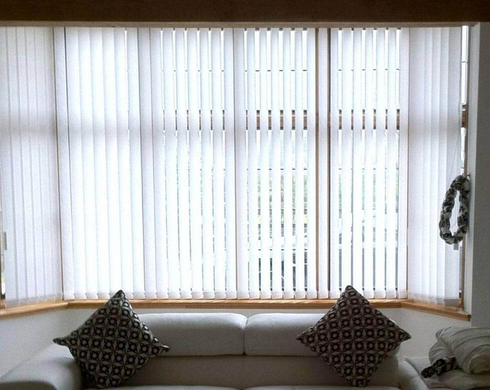 For greater balance and control of light and privacy, Vertical blinds are the perfect solution. With fingertip control, these versatile blinds can be installed on tracks to fit the whole window. If a greater degree of control is desired, these blinds can also be fitted one blind per window panel, giving added flexibility to the user in whether the whole window is opened up, or just a panel or two. The slats on these blinds can also be angled, so are ideal for allowing in a gentle filter of light without room for prying eyes to see in from outside.
